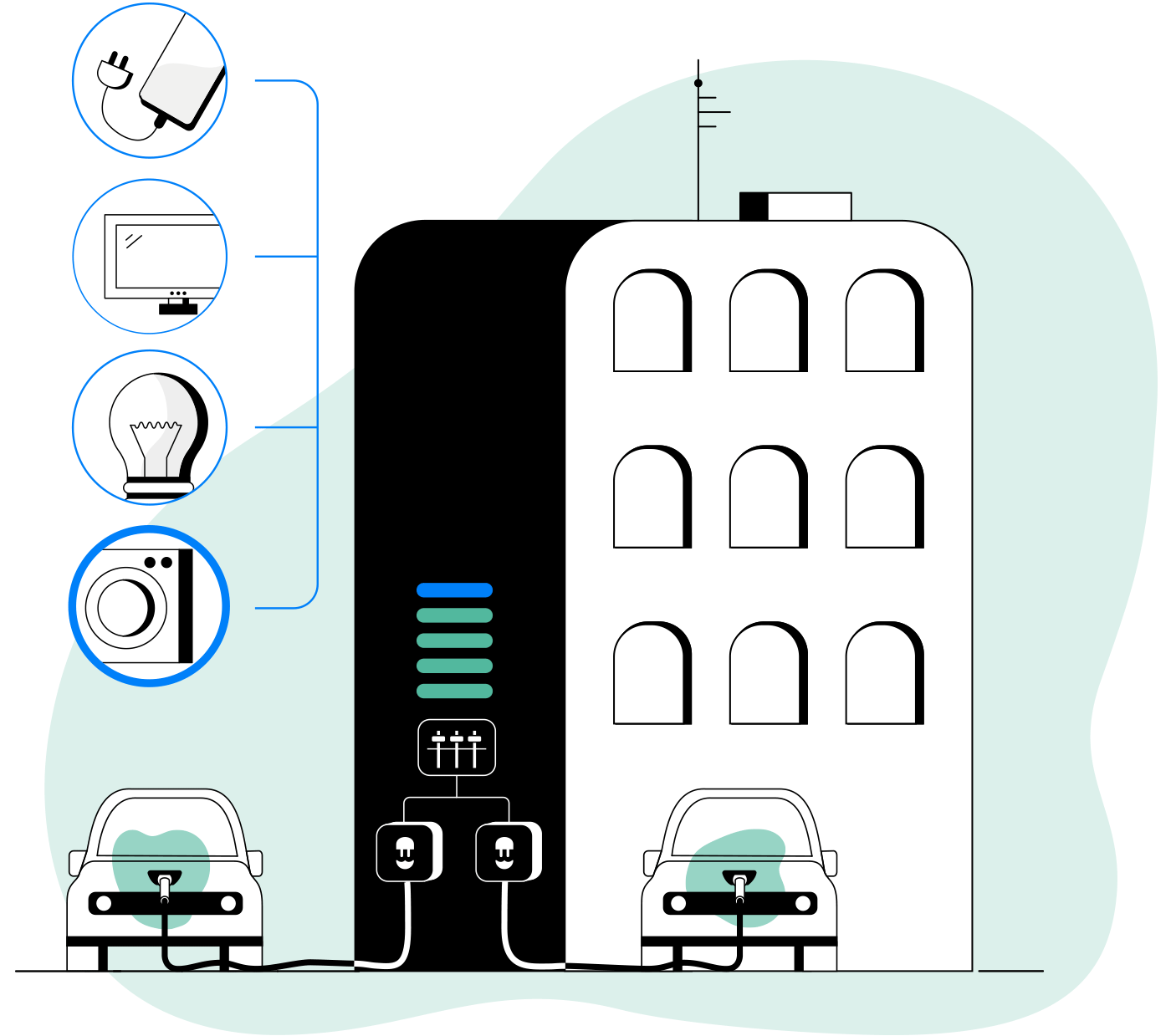 Vous possédez plusieurs véhicules électriques? Besoin de charger simultanément ? Dynamic Power Sharing surveille votre maison et la puissance disponible et la distribue automatiquement entre vos véhicules électriques connectés.