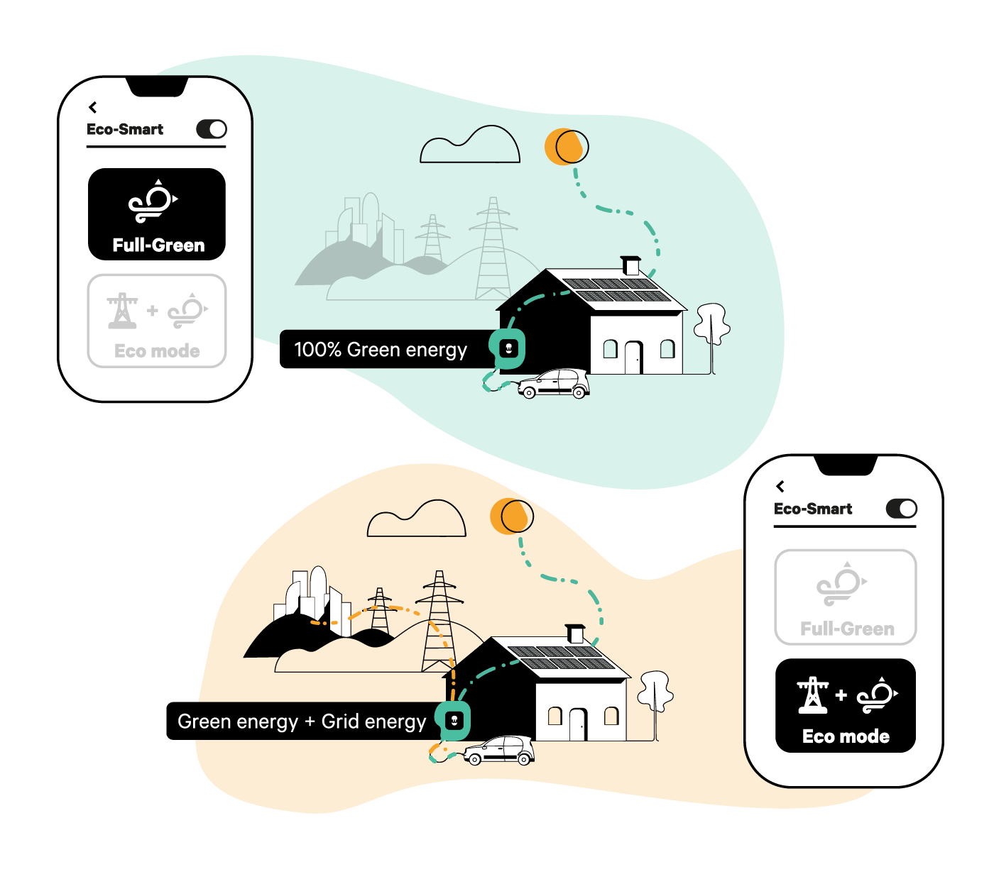 Eco-Smart est une fonctionnalité intelligente intégrée qui permet de recharger les véhicules électriques avec l'énergie verte générée par vos panneaux solaires (PV) ou vos éoliennes. Ajoutez simplement un wattmètre à votre installation pour commencer.
