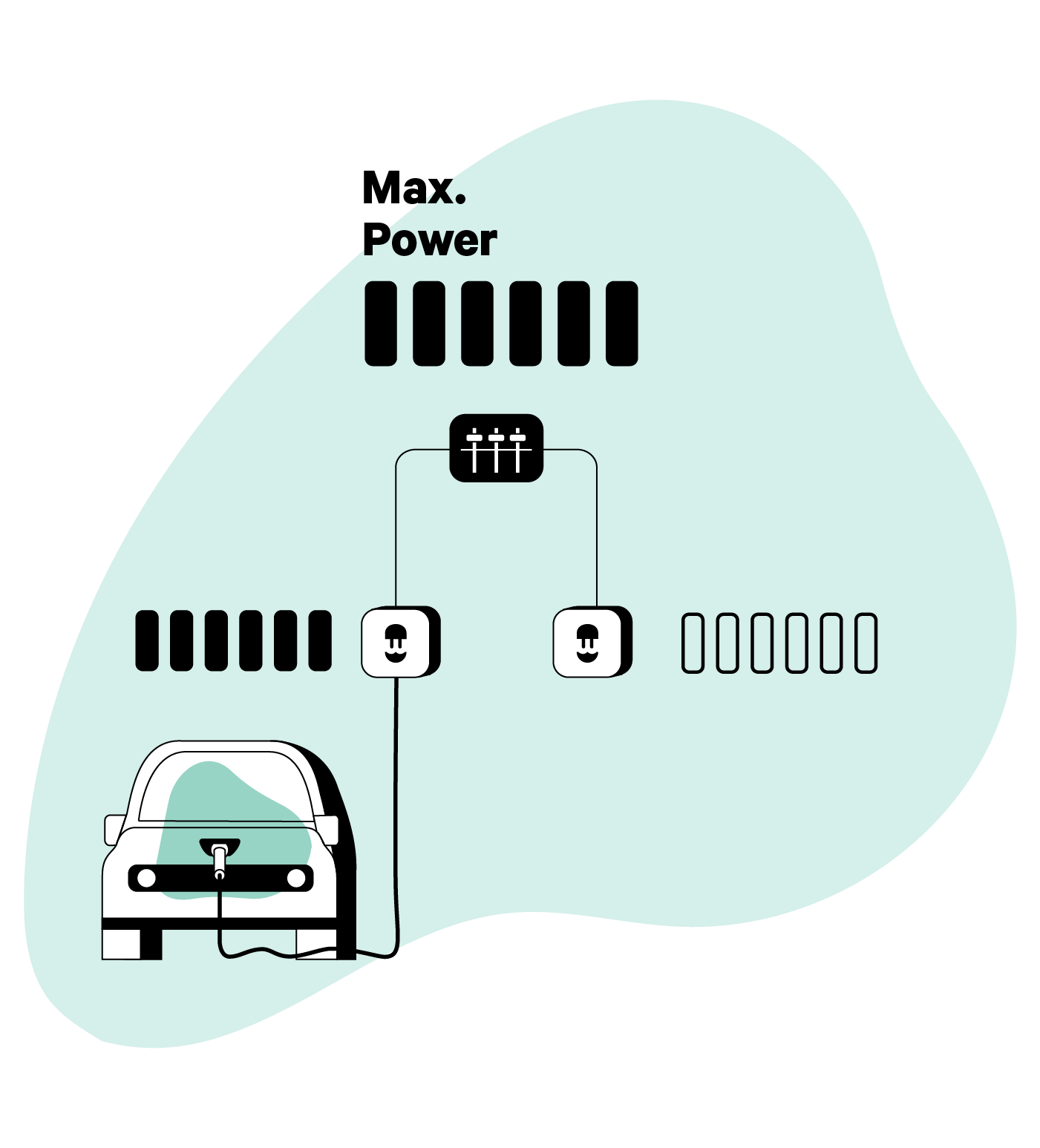 Le Power Sharing équilibre automatiquement la distribution d'énergie sur tous les chargeurs connectés en fonction des besoins en énergie de chaque véhicule. Sans frais supplémentaires.